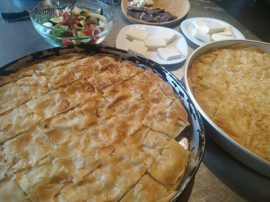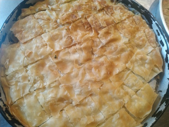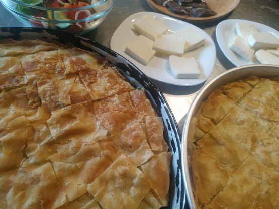 - Nje tepsi me byrek me 14 racione